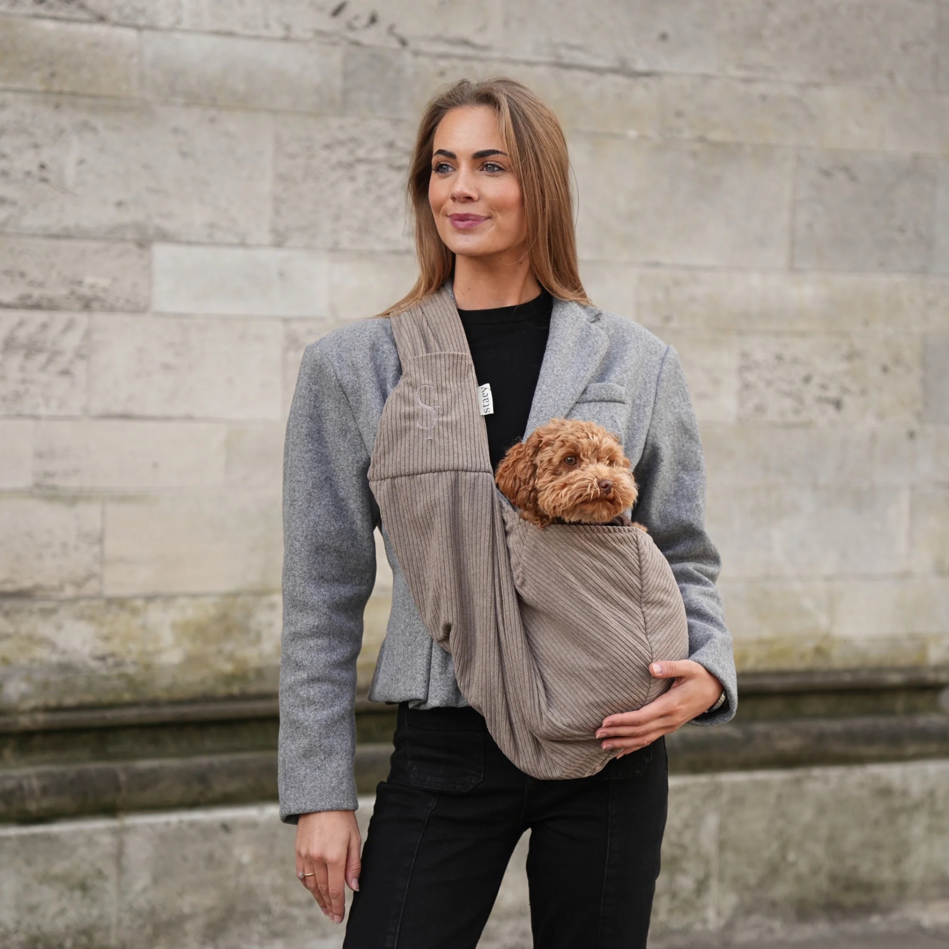 Pehmeästä ja elegantista vakosamettikankaasta valmistettu koiran kantolaukku tarjoaa ylellisen ulkonäön yhdistettynä käytännöllisiin ominaisuuksiin - täydellinen arkisiin seikkailuihin sekä pidemmille retkille.