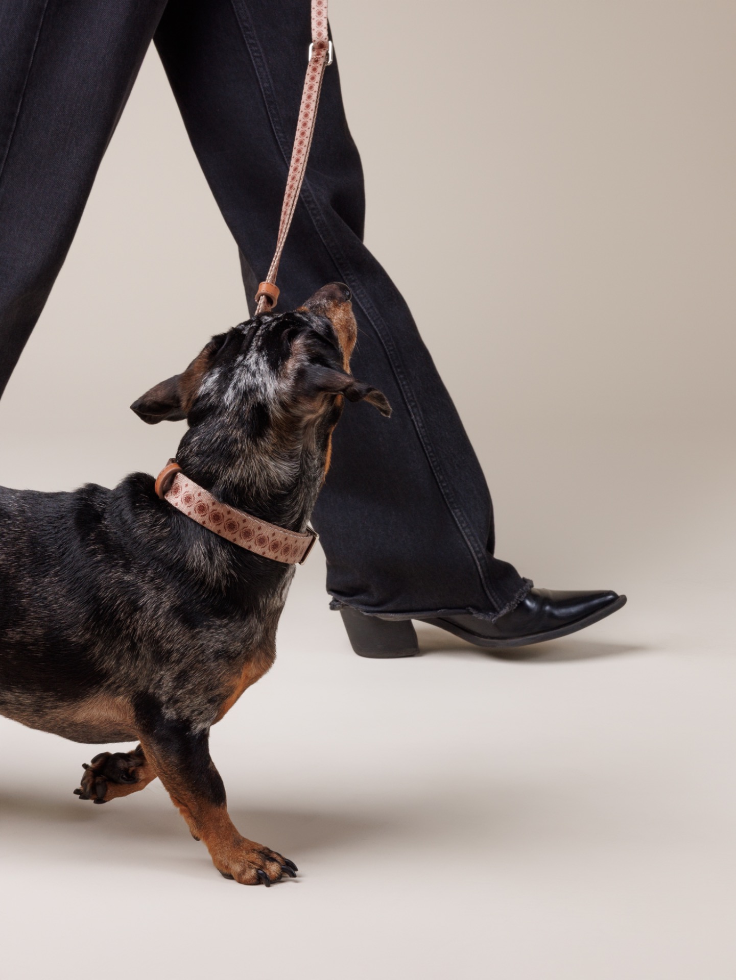 Täydellinen match saman kuosin taluttimen sekä samansävyisen kakkapussikotelon kanssa